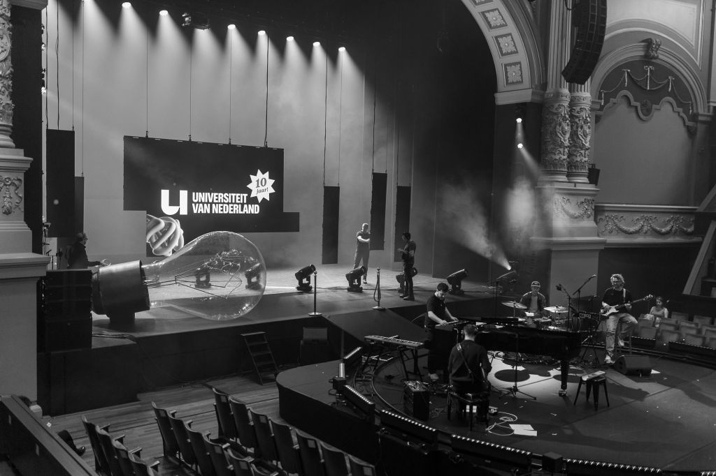 Eem mini-college in een uitverkocht Koninlijk Theater Theater Carre voor het 10-jarig bestaan van de Universiteit van Nederland